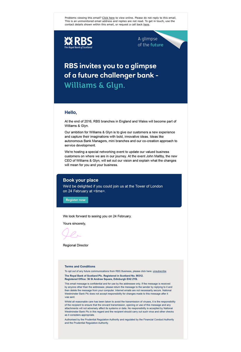 Introducing the new challenger bank Williams & Glyn to the customers of RBS