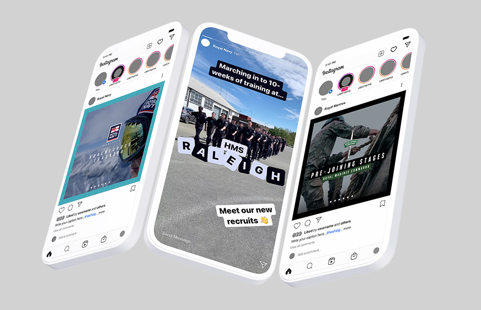 The ‘Always on’ content I produce for the Royal Navy and Royal Marines social channels ranges from ‘day in the life’ videos, tours, takeovers, carousels, live Q&As and teasers. Styled up to appeal to Gen Z, this content is short and snappy and dials up the benefits of joining the service, such as travel, sport and adventure. Alongside this, there is also additional content that informs potential recruits about the joining process, tips around fitness and unpacks the roles within the service.