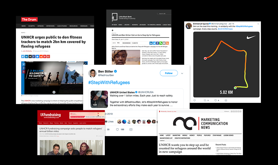 The campaign has been picked up by The Drum, Bima, Little Black Book and many other media outlets – https://stepwithrefugees.org/en/
